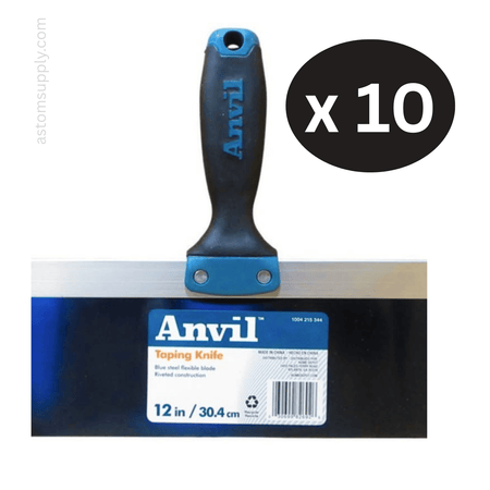 This listing is for a pack of 10 brand-new, sealed Anvil 12" taping knives, ideal for drywall finishing and taping applications. Made with durable stainless steel blades and a comfortable handle, these knives provide smooth, precise spreading and finishing for professional results.