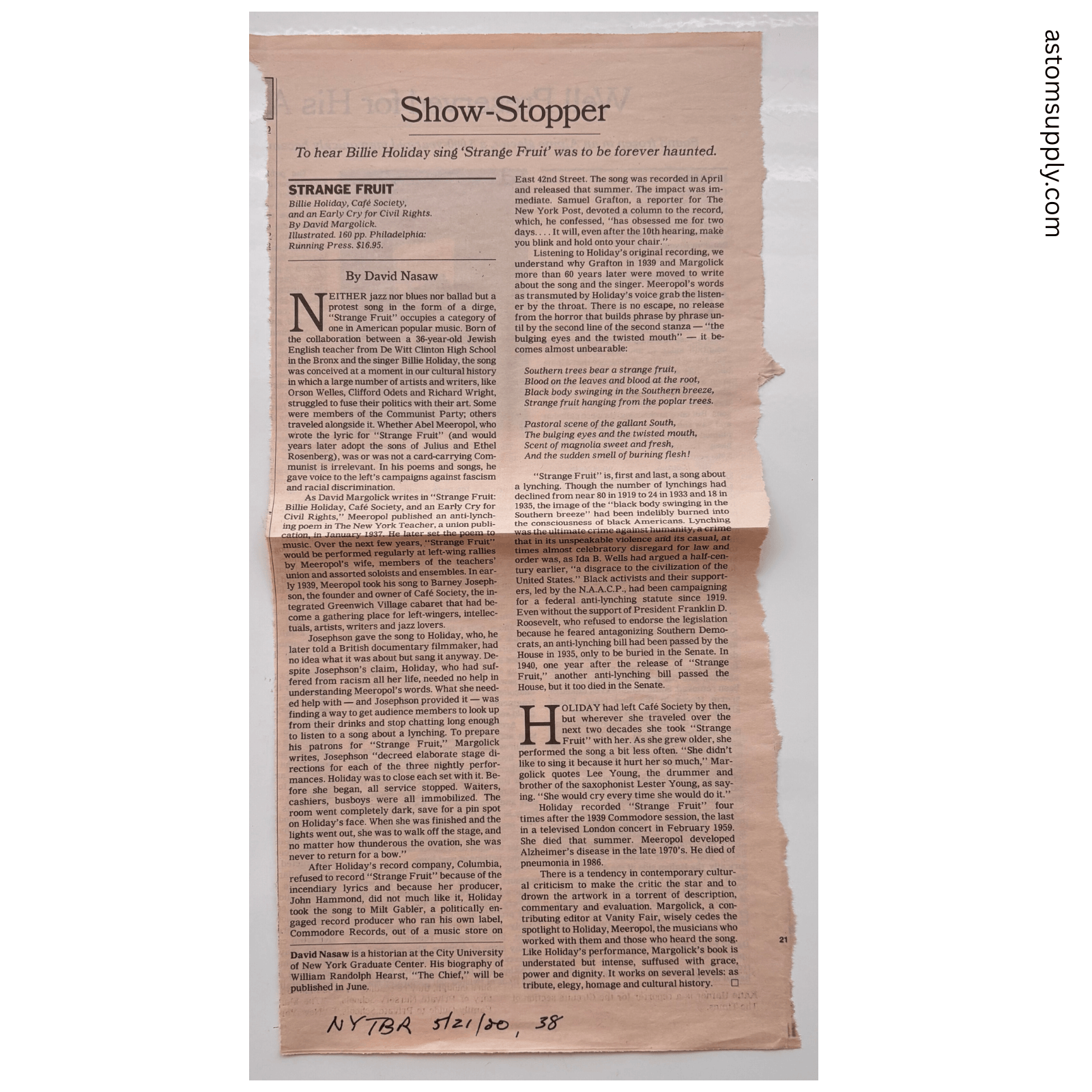 ✨ Bonus: Includes 3 original newspaper articles related to Billie Holiday, adding historical and collectible value.