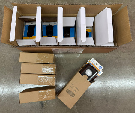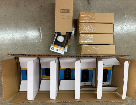 This is a bulk lot of 25 new GE duplex receptacles, each matched with its own wallplate. Perfect for electricians, contractors, or renovation projects needing high-quality UL/cULus-certified outlets approved for both Canada and the U.S.