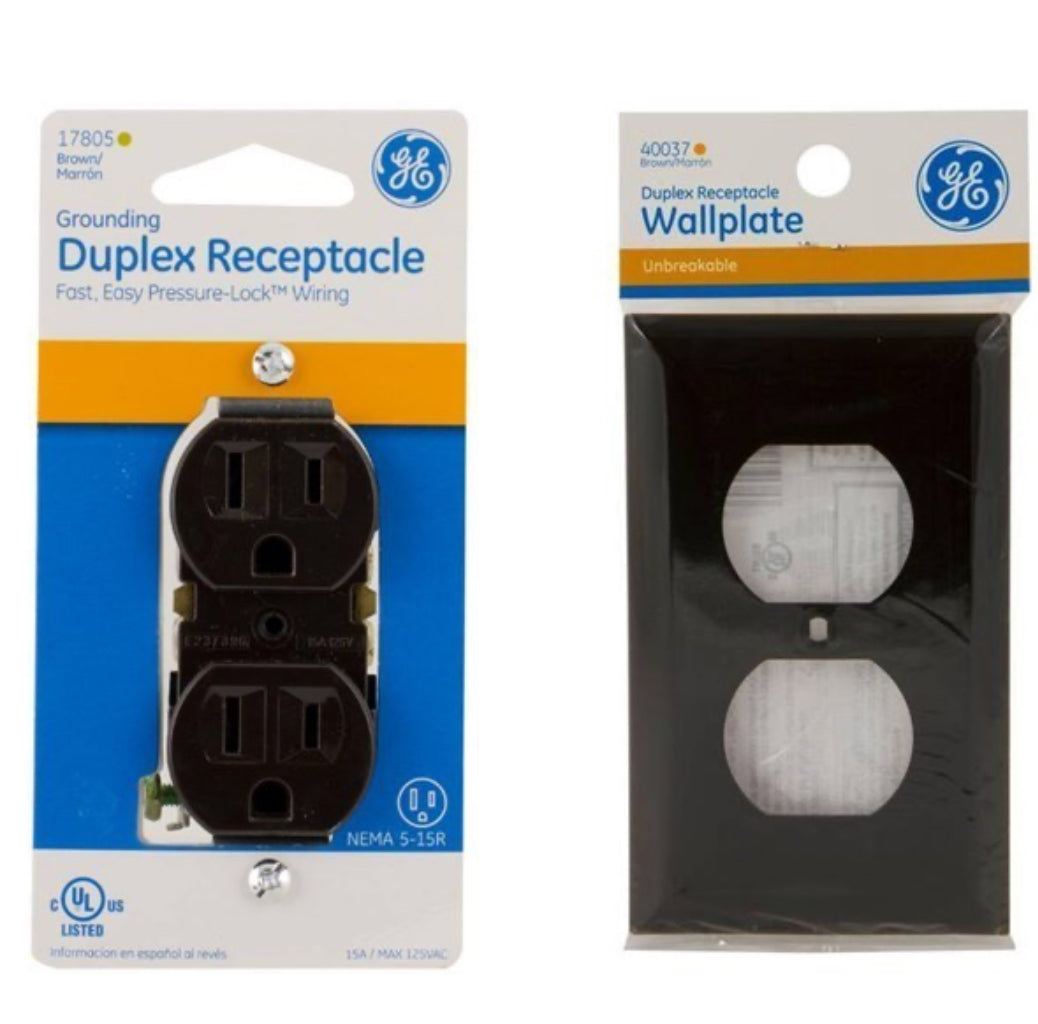 GE Duplex Receptacle 17805 w/ Wallplate 40037 Brown UL cULus Box of 25 New