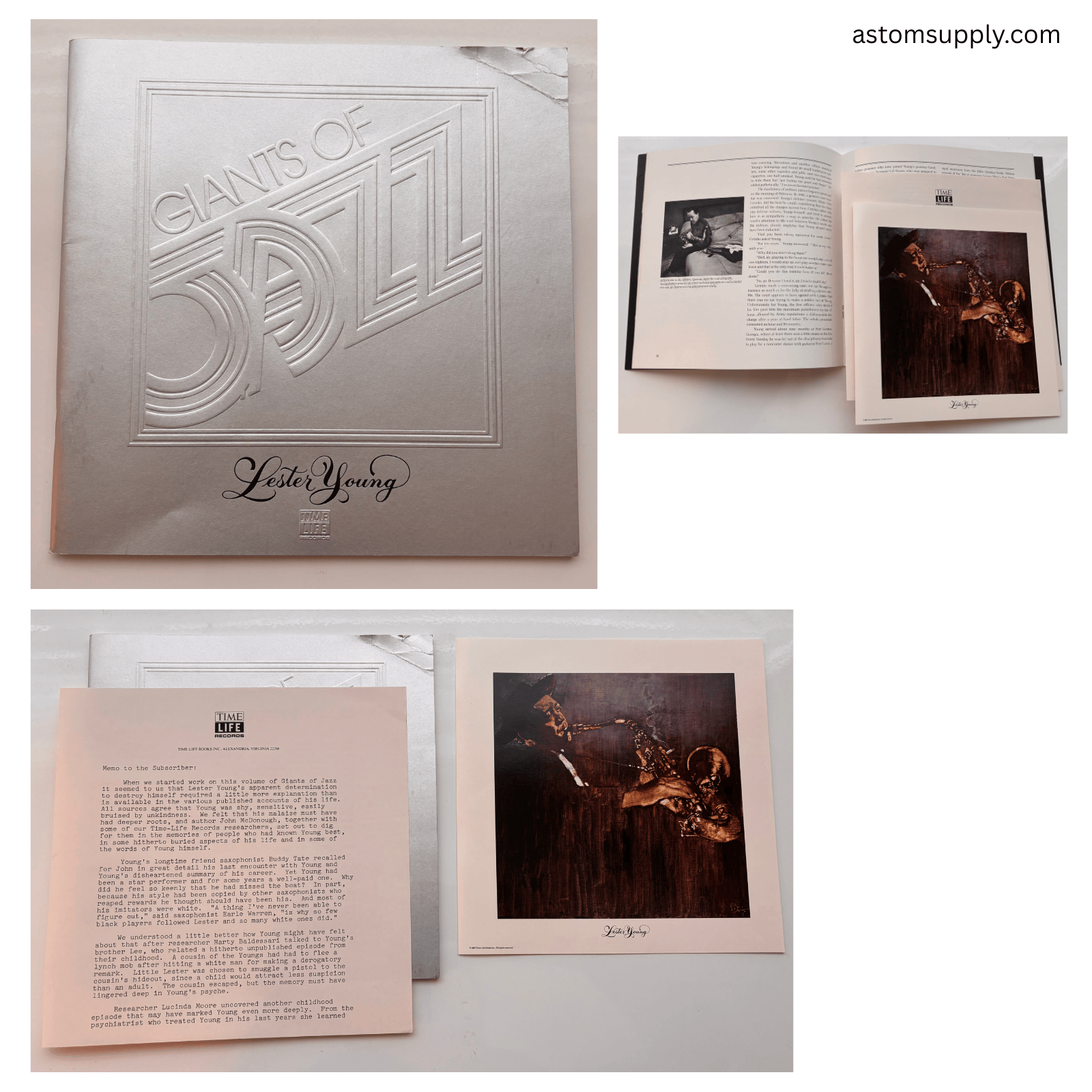 Classic Lester Young – Giants of Jazz box set from Time Life Records, featuring 3 vinyl LPs, the original outer box, and the original illustrated booklet/brochure.