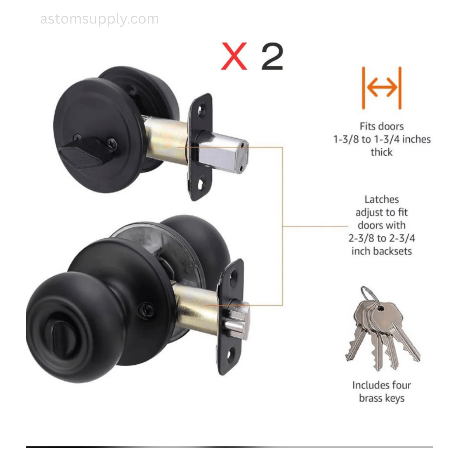 • Finish: Matte Black Flat Ball Knob & Deadbolt