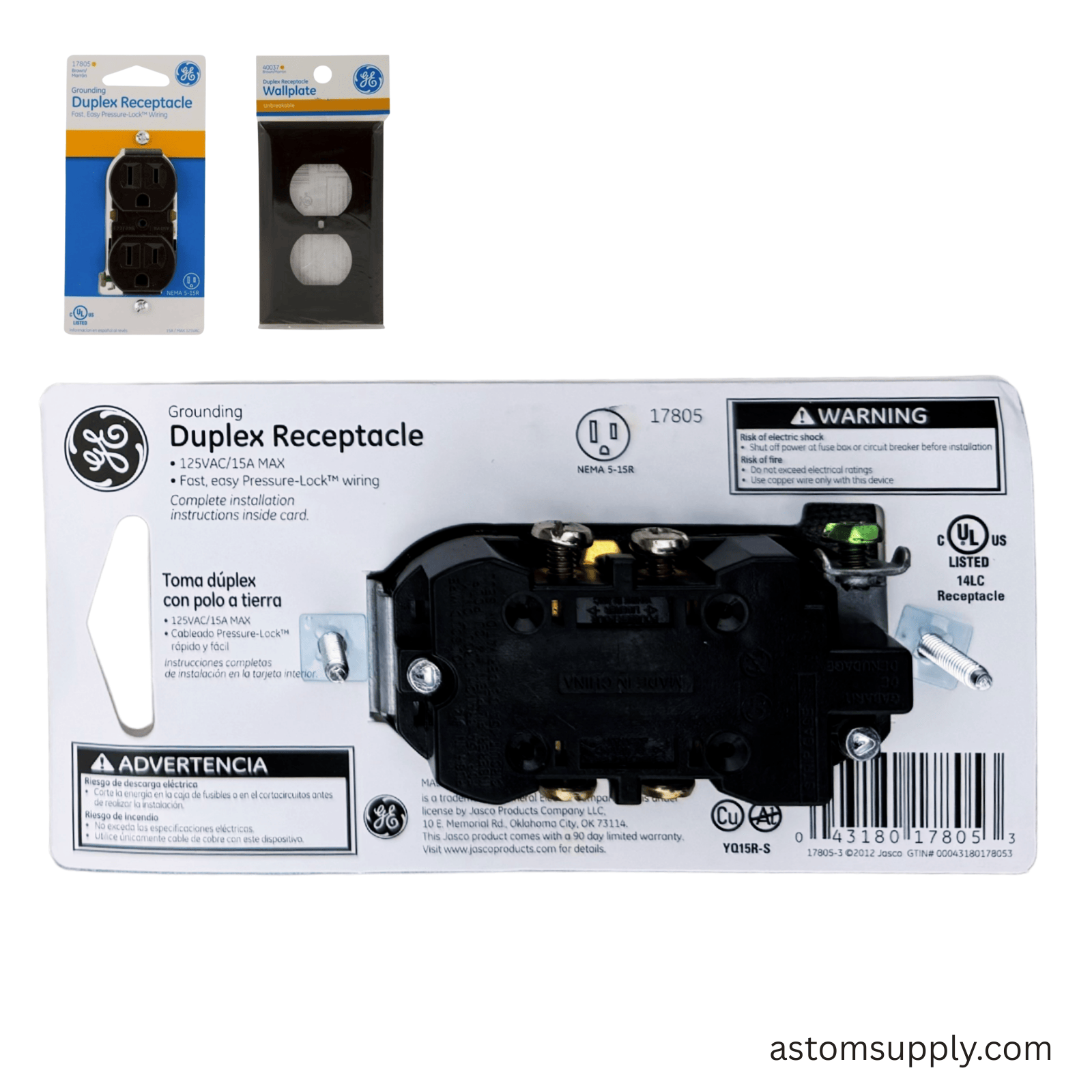 (Pack with 15) GE Duplex Receptacle 17805 & Wallplate 40037 – Brown – UL cULus