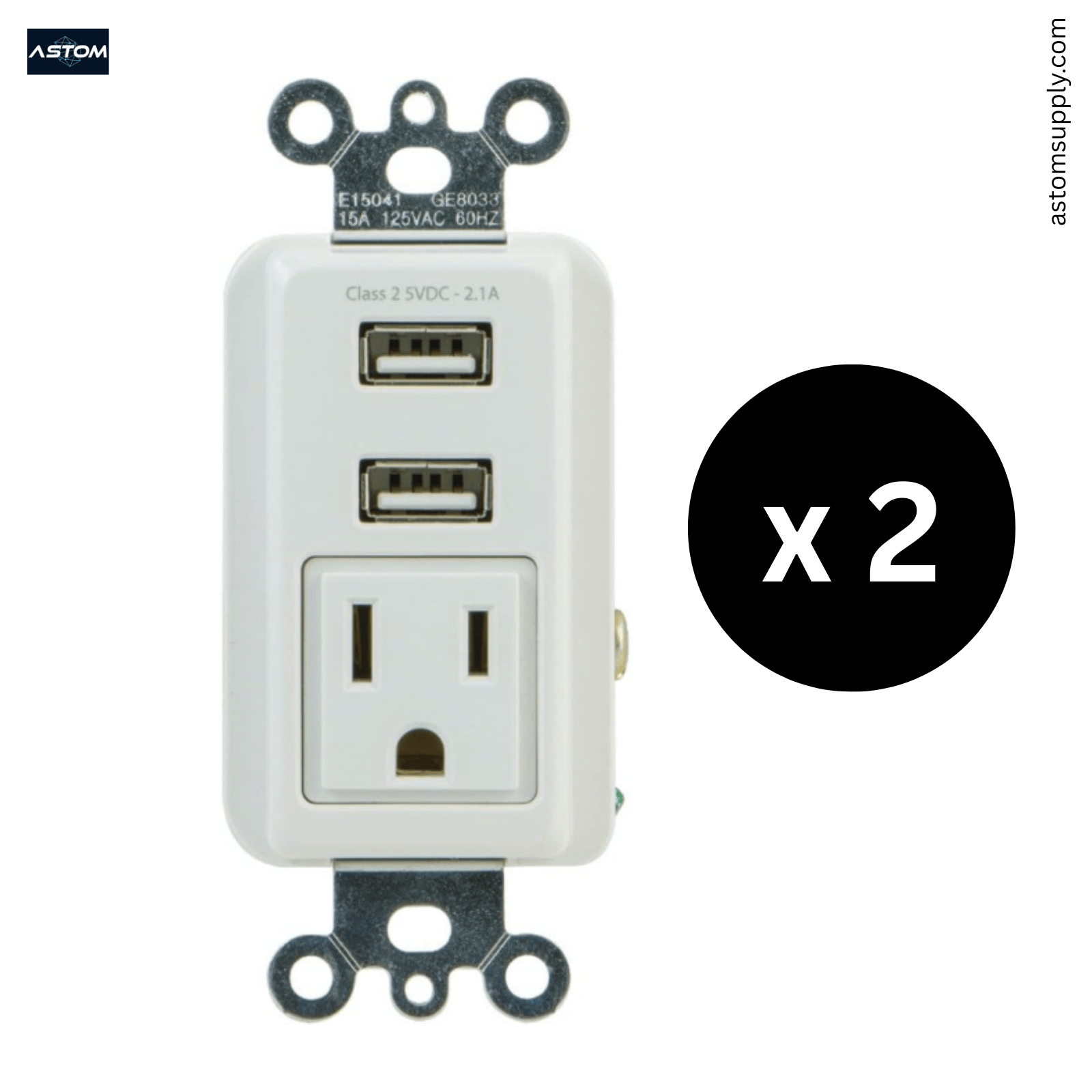 (Pack with 2 ) GE 25336 Wall Outlet Charger 2 USB Ports 2.1A + 1 AC 15A 125V