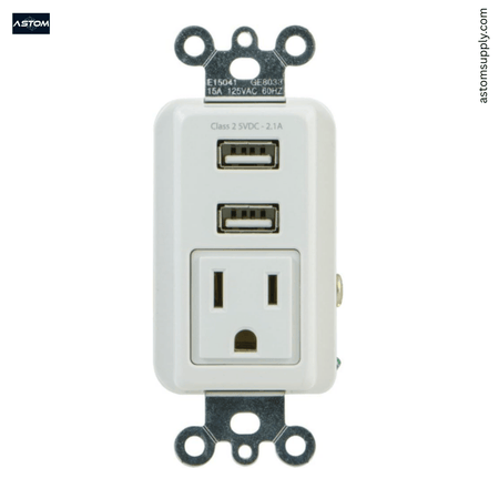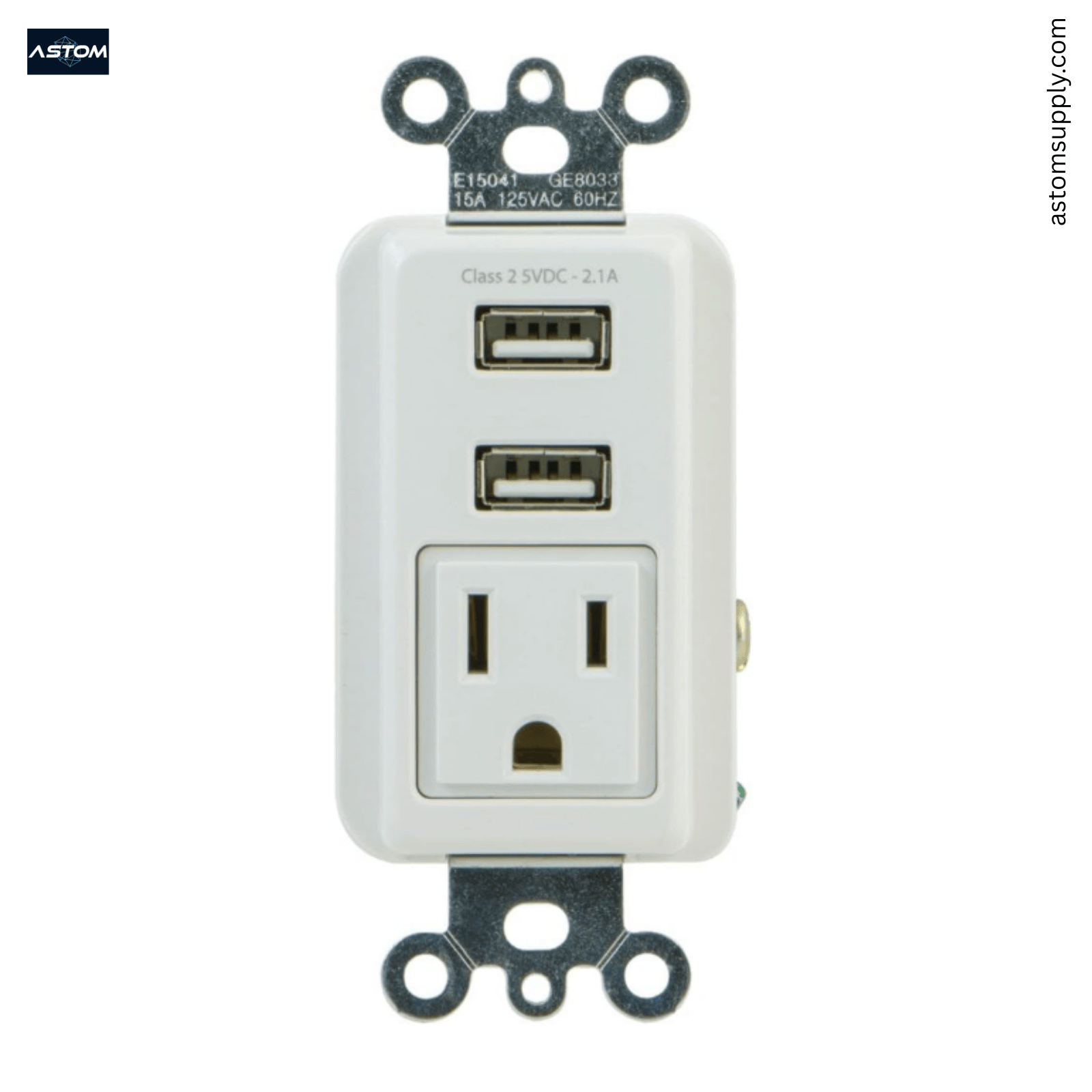 GE 25336 In-Wall Receptacle – 2 USB Ports + 1 Standard AC Outlet – USB Charger 2.1A / 10W (Model GE8033 / Code 030878253369)