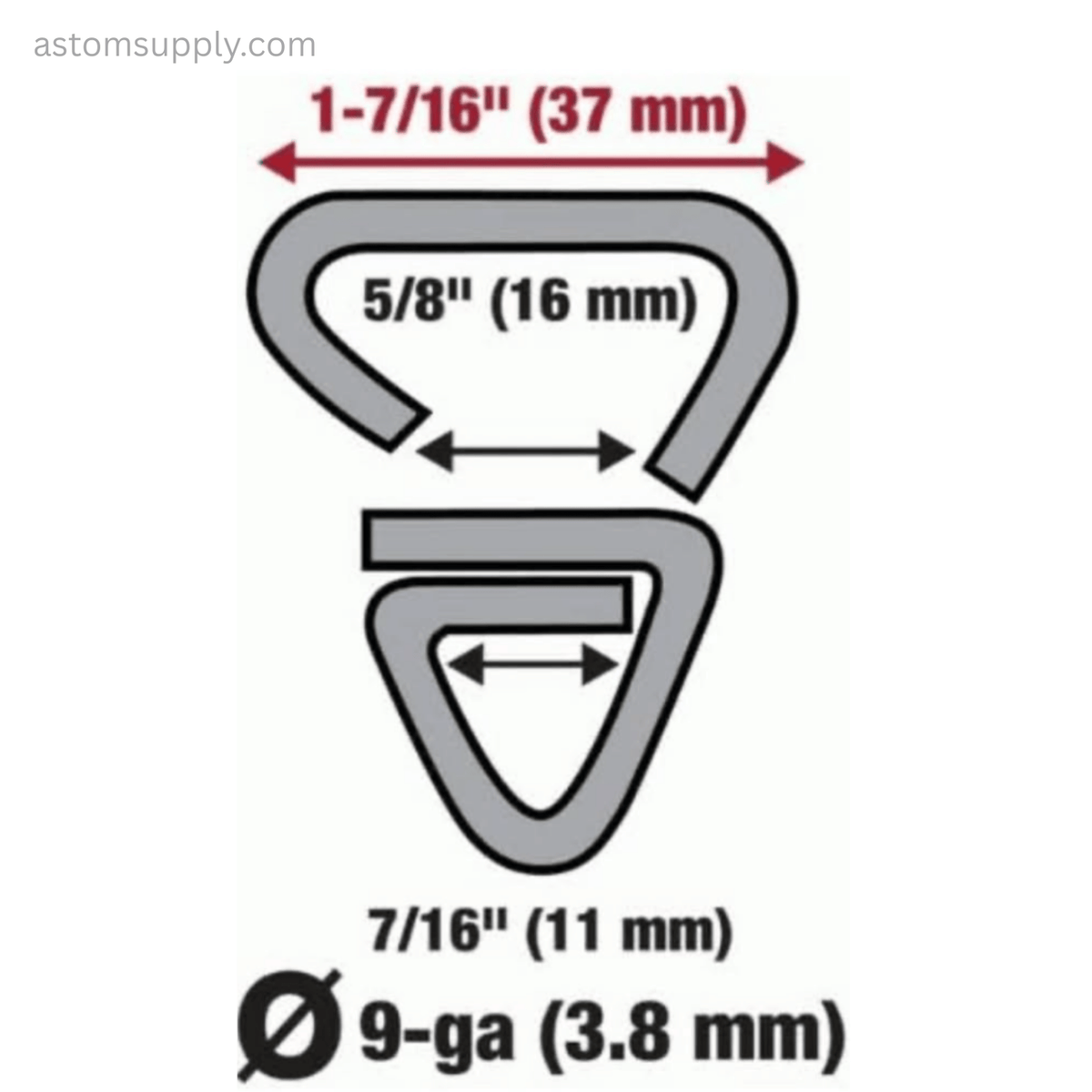 The ring diameter of these hog ring staples can easily secure 7-ga. (4.5 mm) tension wire to 9-ga. (3.8 mm) chain link fence.