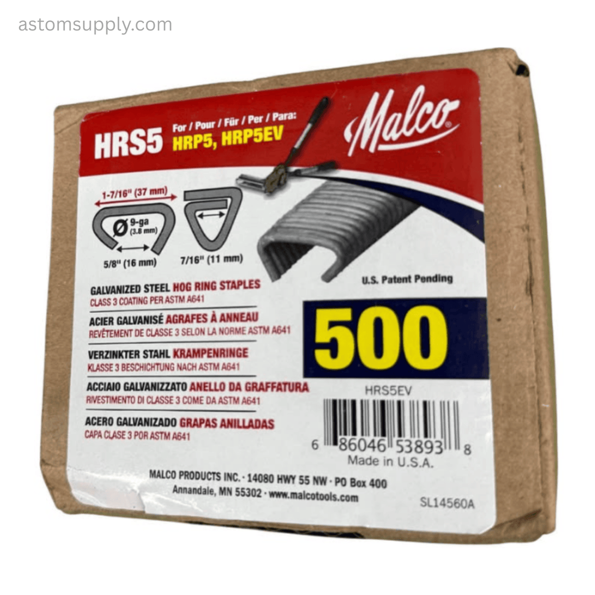 (Sealed Box) Malco HRS5EV 9-Gauge 1-7/16 in. Hog Ring Steel Staples, 500-Pack